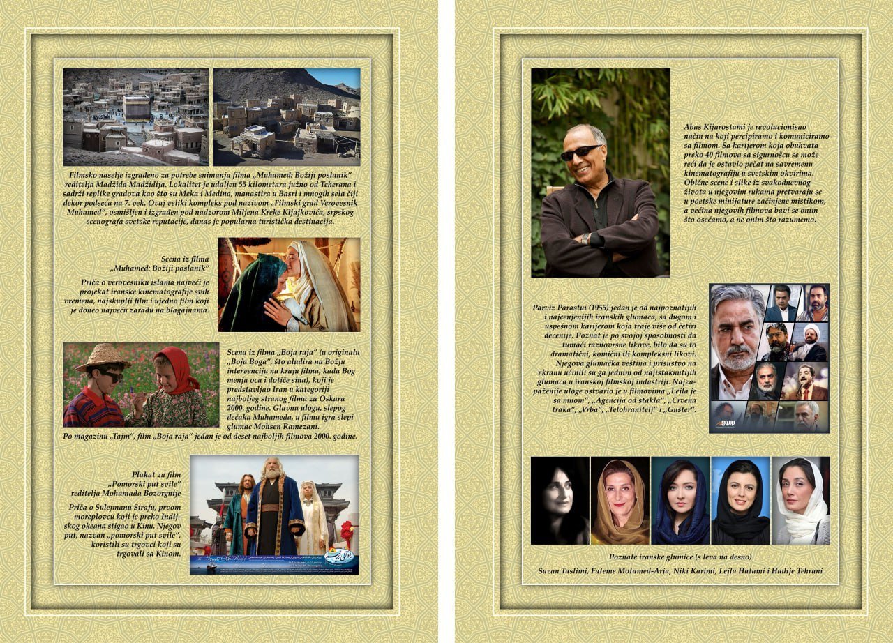 Такође, анализира се и присуство иранског филма у Србији, представљају најзначајнији ирански кинематографски центри и институције, и начини комуникације са њима.